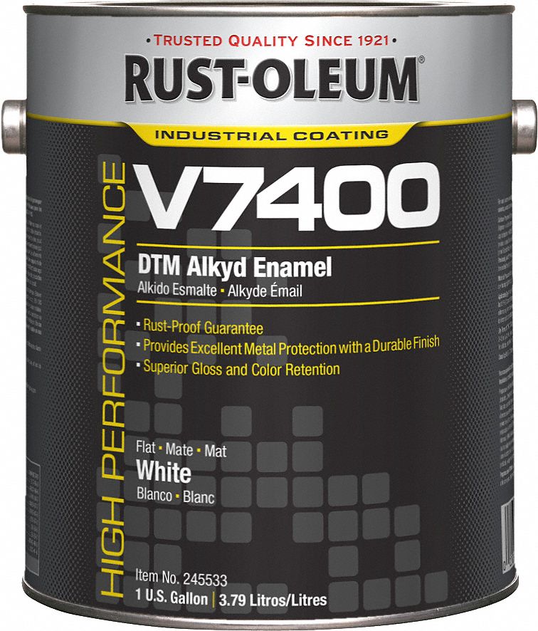 Rustoleum White Oil Based Paint / High gloss interior/exterior paint, oil base, white, 5 gal item # 6h123;. Apply to fiberglass, wood or metal surfaces. The paint helps protect against corrosion and rust. Dries to the touch in 1 to 2 hours and covers up to 100 sq ft Protective enamel gloss canvas white paint (case of 2) is designed for use on a variety of materials including wood, metal, concrete and masonry. All of it that i'm aware of, yes.